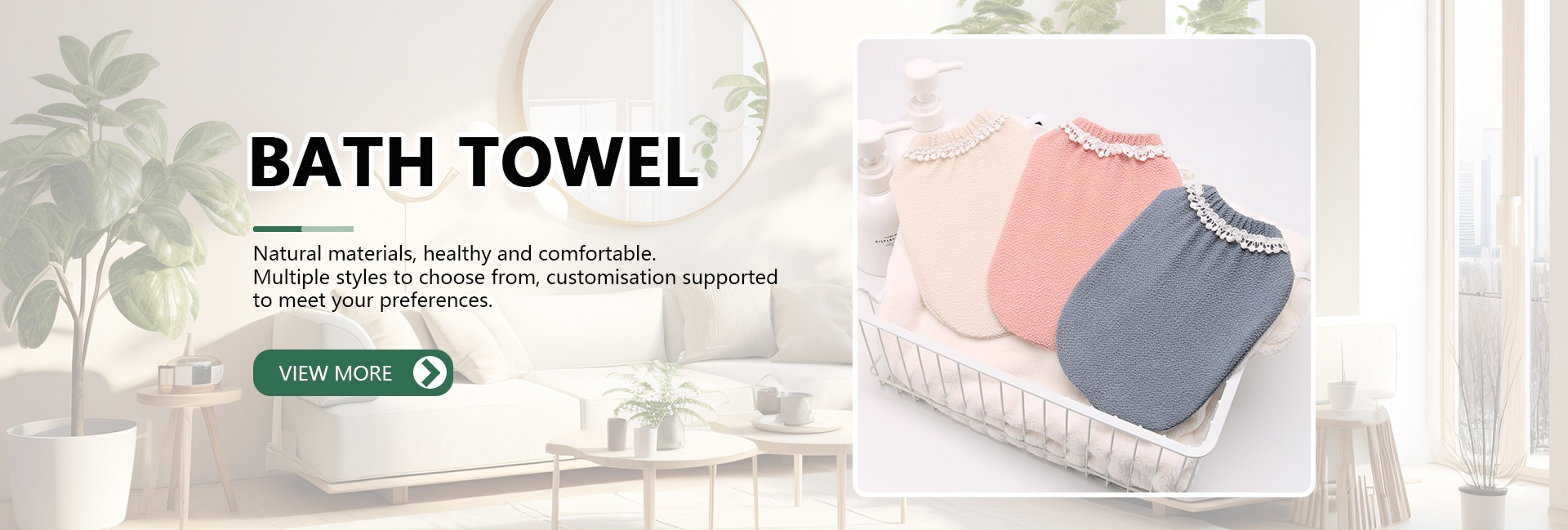 Productos principales:Toalla de baño, PUF de ducha, gorro de ducha, Torre